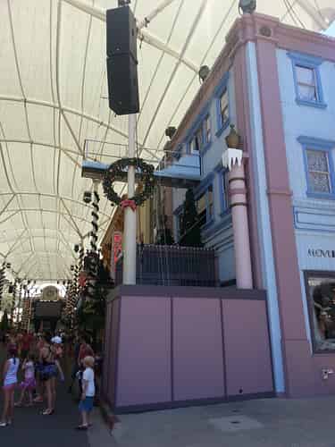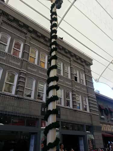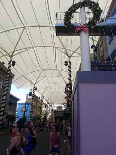 A zipline has been put up over main street, presumably for the Christmas parade.
