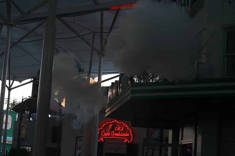 As the sun sets and the show nears, Main Street starts to become foggy.