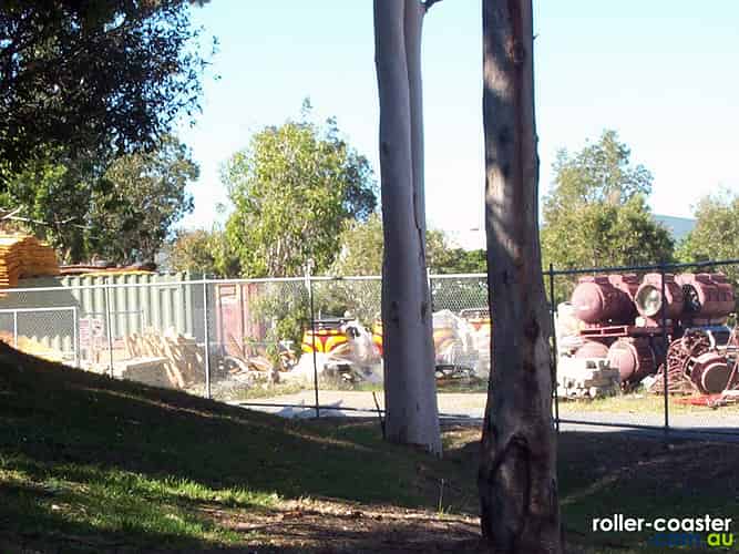 The bulk of the coaster's cars waiting out the back awaiting installation onto the track.