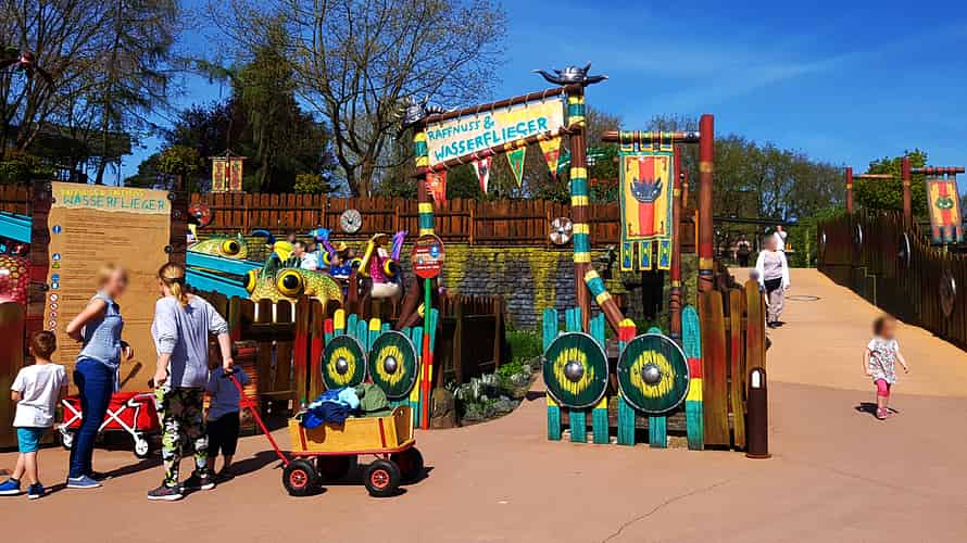 Raffnuss and Taffnuss Wasserflieger features dragons that guests can control the height of during the ride. Handy for avoiding squirting jets of water around the ride.