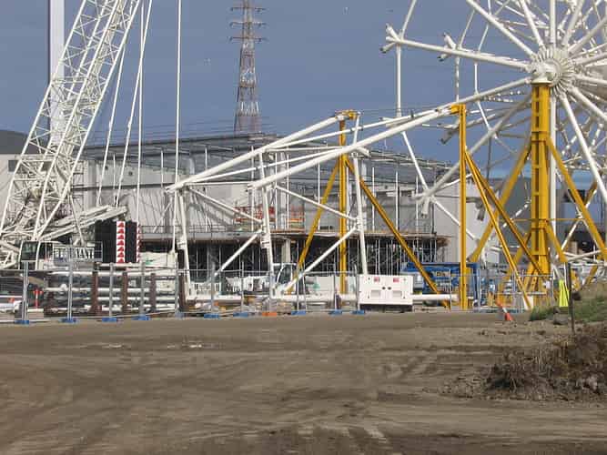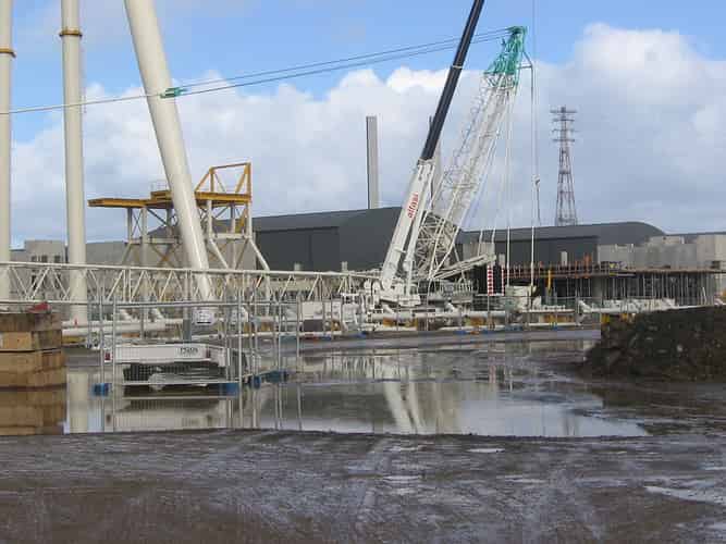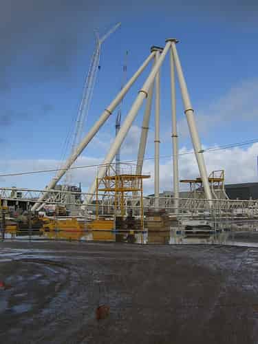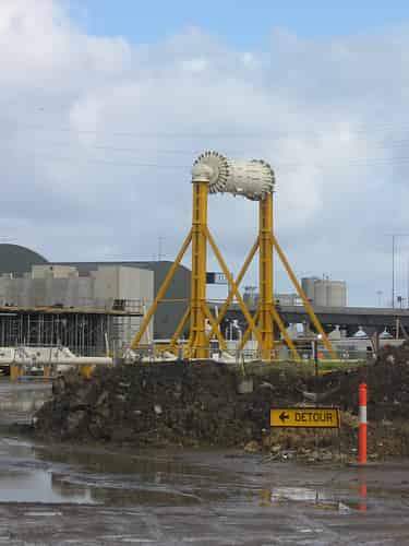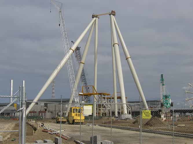 More steel framework, with an appearance similar to a giant calf feeder, can be seen to the right of the hub.