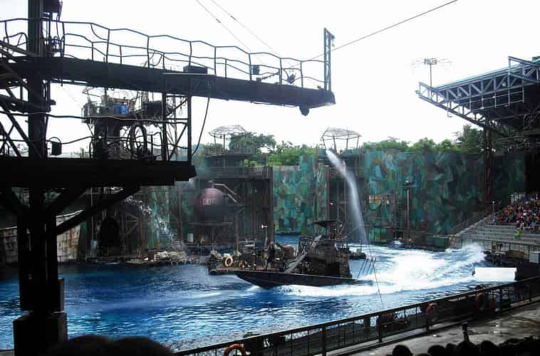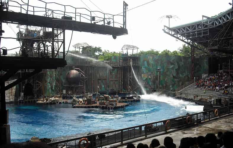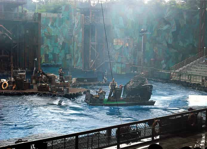 The arena has 3 classes of seating, dependign on how wet you'll get. Blue seats will leave you soaked, green seats mayleave you damp, and red seats will leave you dry.
