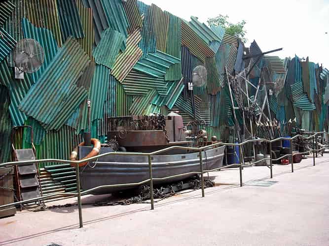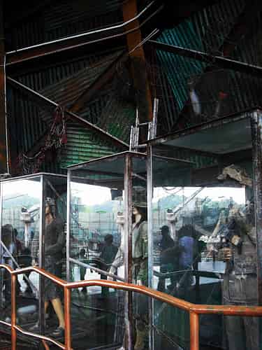 The wating area is filled with salvaged debris, adapted as tools and machines to help people live in this post apocalyptic world.
