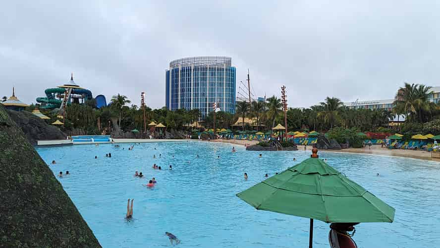 Of course the park has a sizable wave pool and a real sand beach.