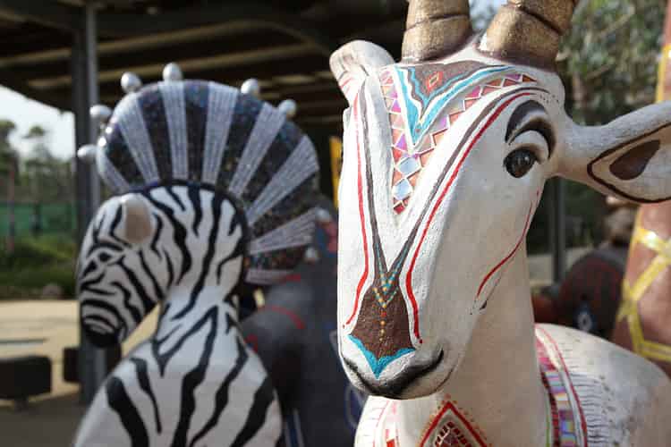 Ornate creatures at park entrance.
