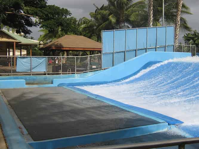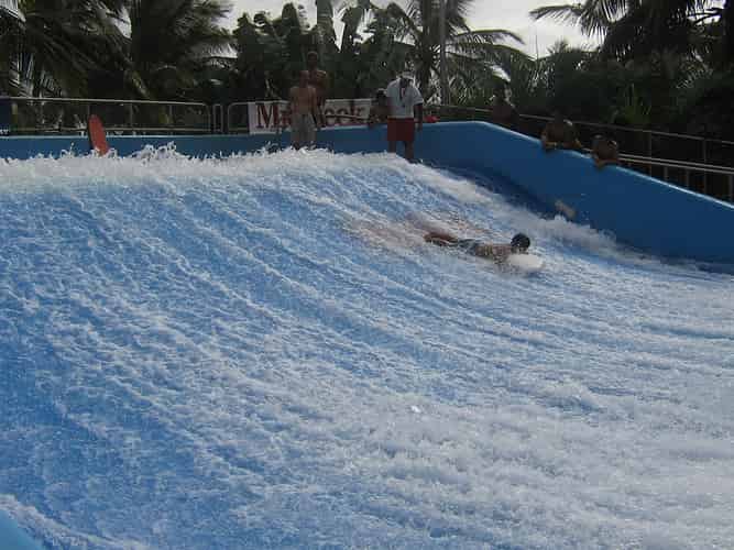 The attraction consists of a soft formed surface, which water is pumped onto, creating a standing wave guests can surf on with specially designed flowboards.