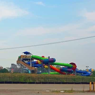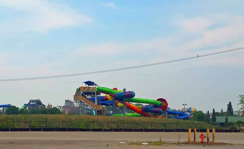 From the car park side you can clearly see the "fattened" helices on the "Kilawaya" slide.