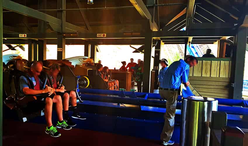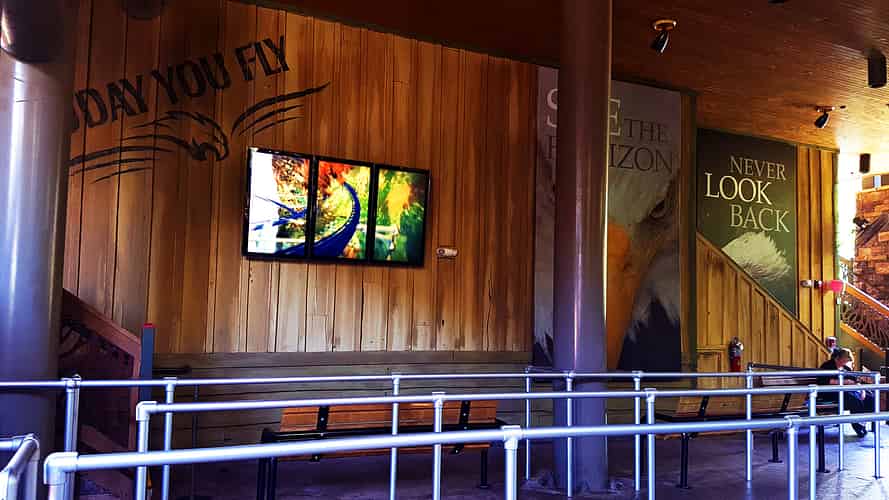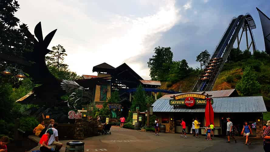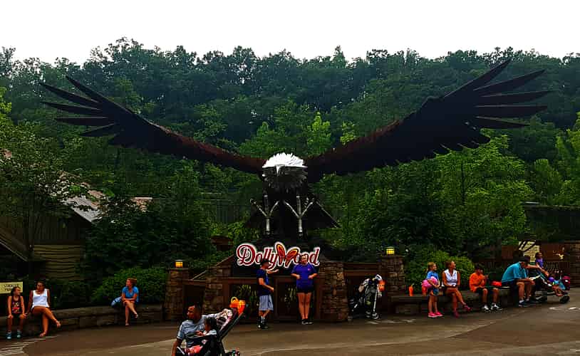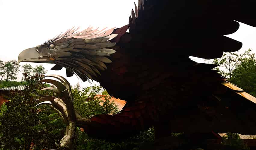 A landmark eagle sculpture marks the ride entrance.