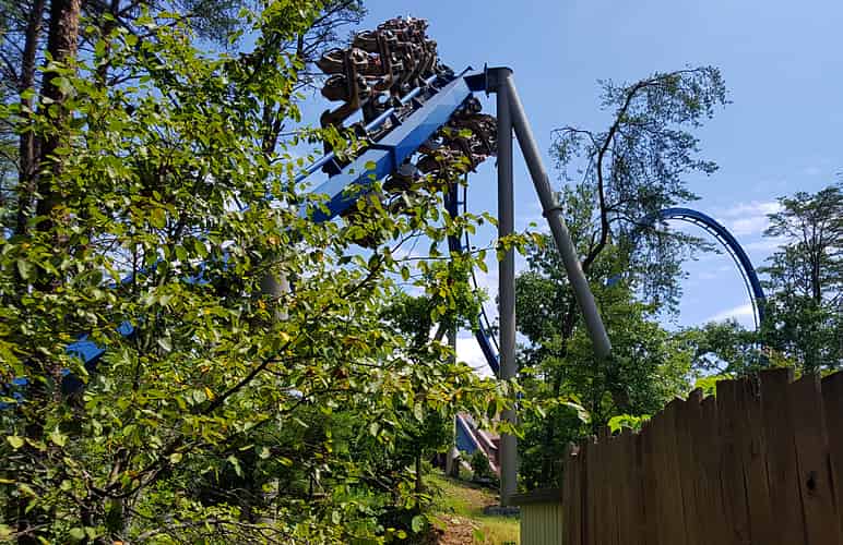 The final inversion is a corkscrew, with some cool near misses with surrounding trees.