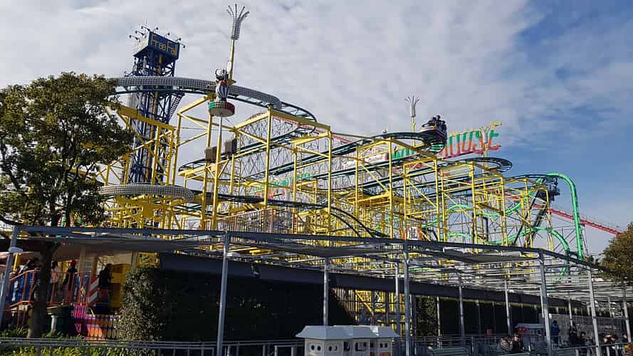 Arashi, Free Fall, Wild Mouse and Frisbee.