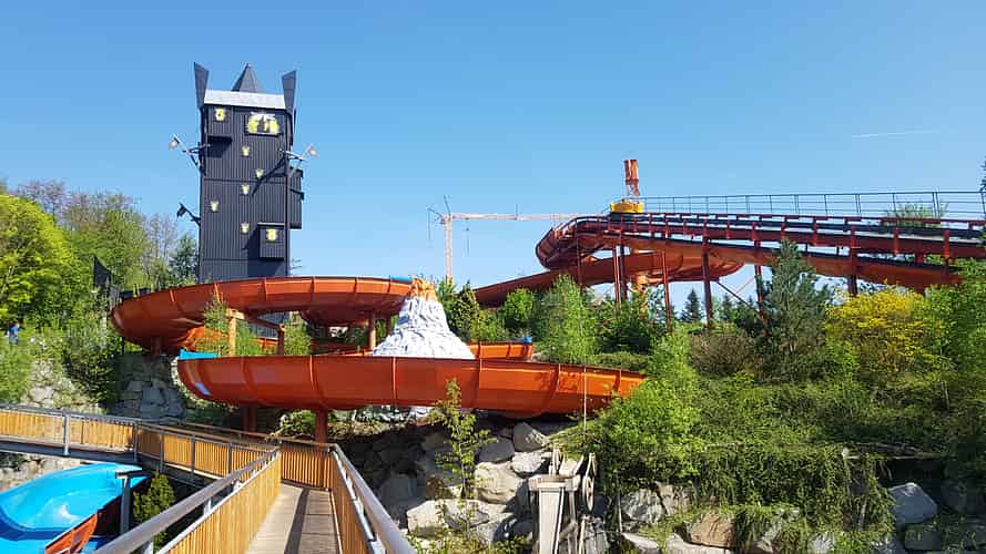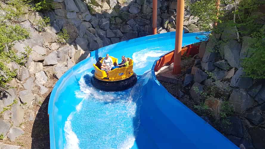 Wildwasser-Rafting is a unique rapids ride combining a water slide style section with a more conventional rapids section at the bottom.