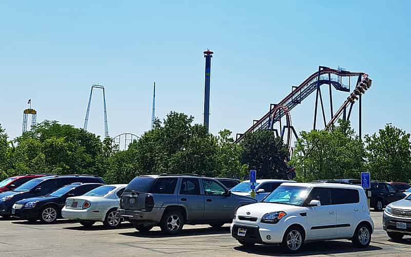 Loop and Cobra Roll. You can see two other Cedar Fair icons. The trash can, and the dinosaur animatronic.