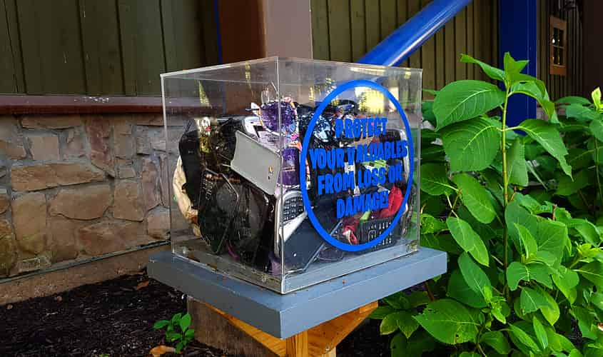 As you walk through the queue a box of smashed phones from 10 years ago encourages you to store your items securely and not take them on board.