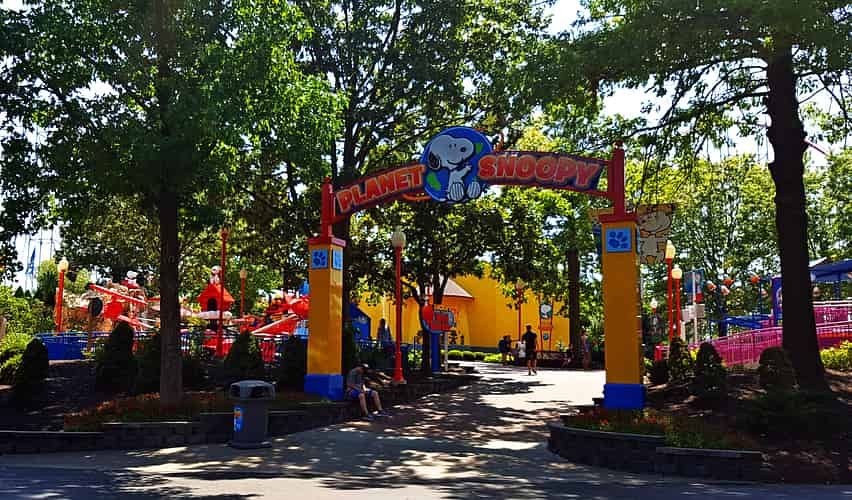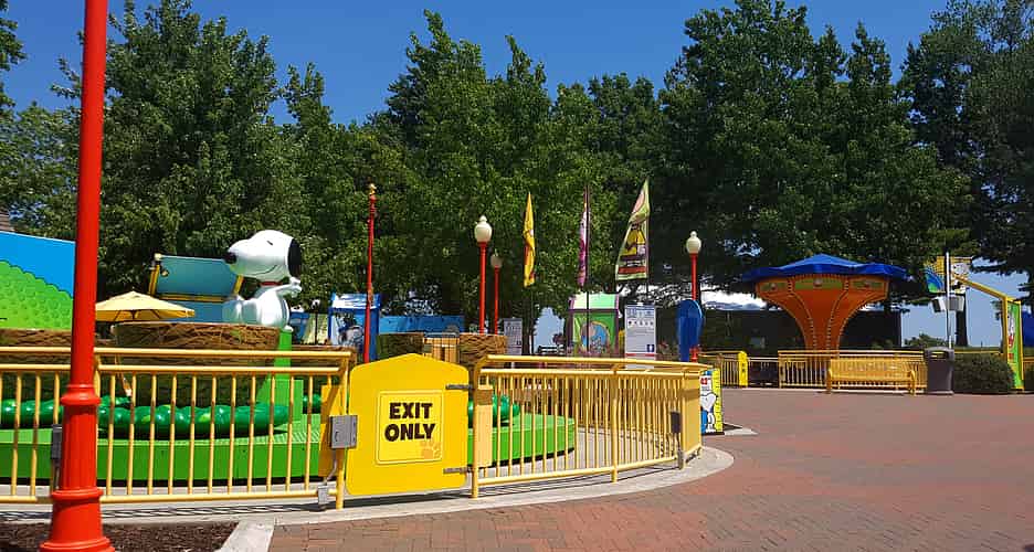 The ride has an interesting T shaped layout, part of which wraps around some of the Planet Snoopy rides.