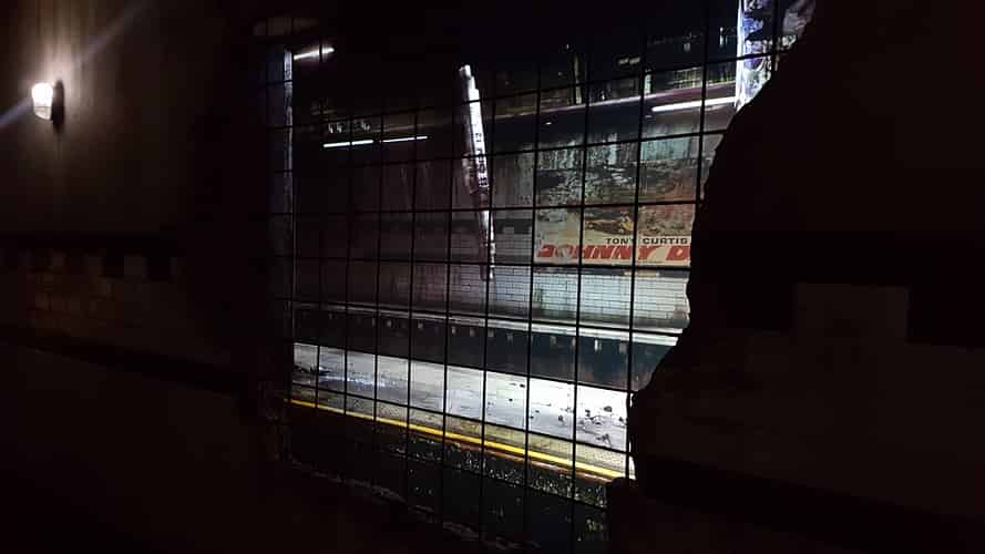 Eventually you reach crumbling sections of tunnel with trains roaring past.