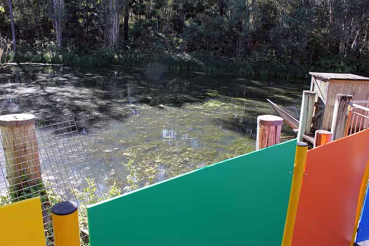 Behind the fencing we see everyone's favourite wildlife attraction, the Dreamworld river.