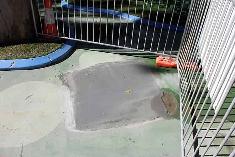Concept art indicates that the area will be given a bright green flooring. Likely a soft rubber flooring as commonly found in playgrounds