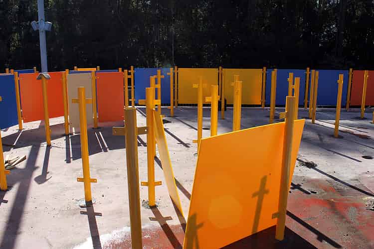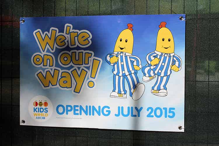 The Bananas in Pyjamas Fun Maze takes shape, using the same bright fence paneling as the rest of ABC Kids World.