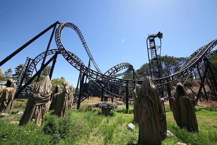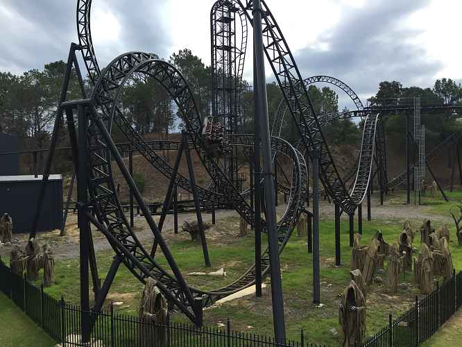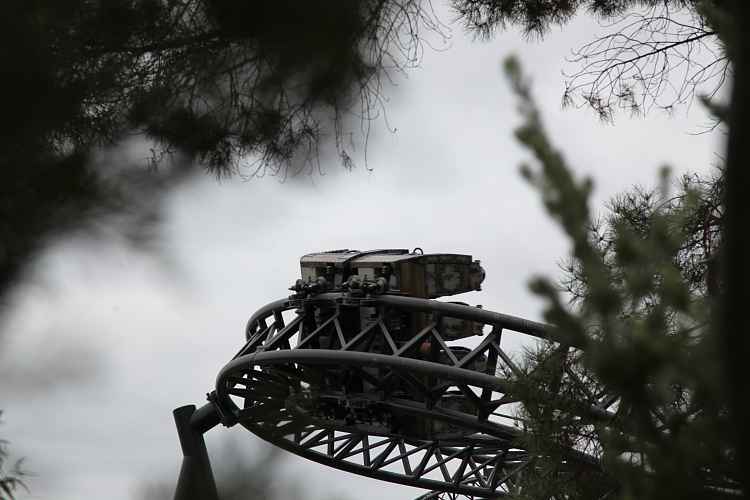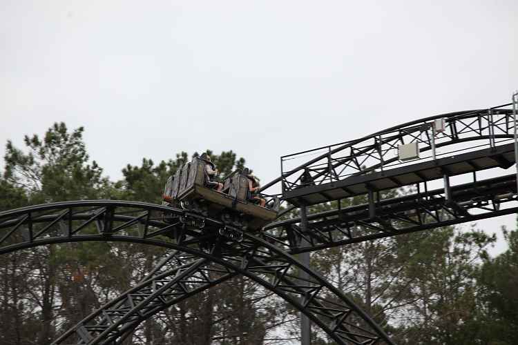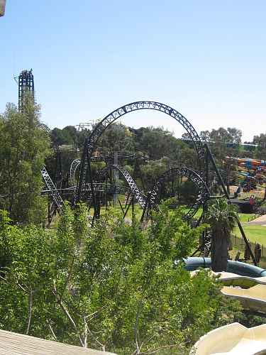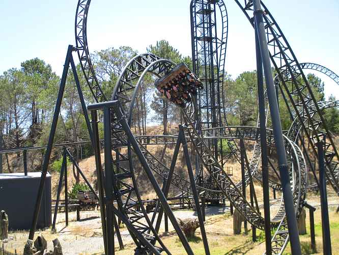 After the overbank is an airtime hill with a great 'head chopper' effect as it ducks under the midcourse brakes. Following the midcourse brakes is a drop and a compact dive loop.