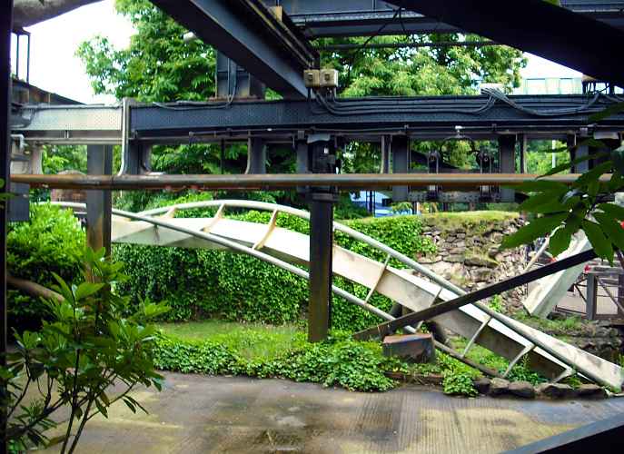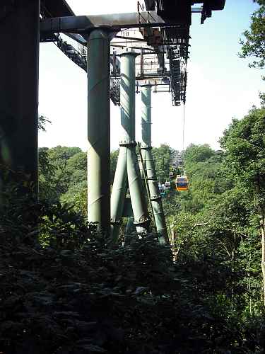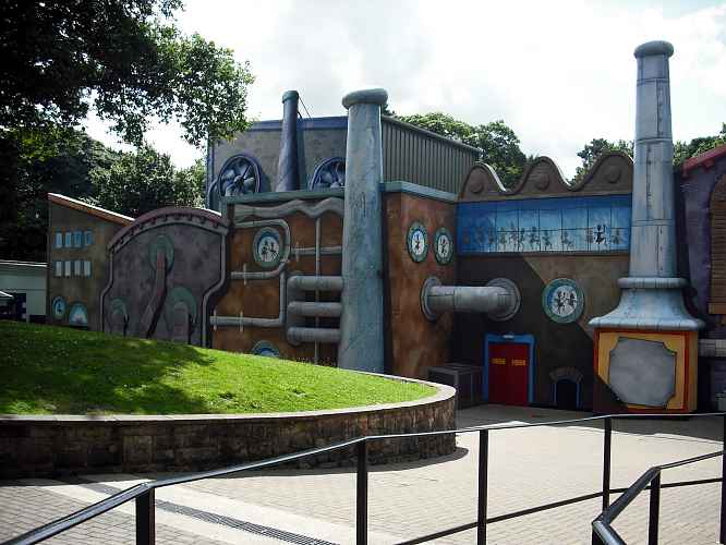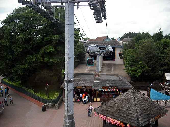 A gondola arriving at the final stop, Cloud Cuckoo Land (With Rita - Queen of Speed in the background)This station was destroyed by fire in late July 2009.