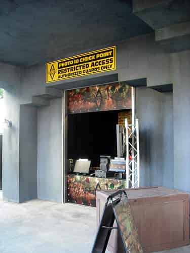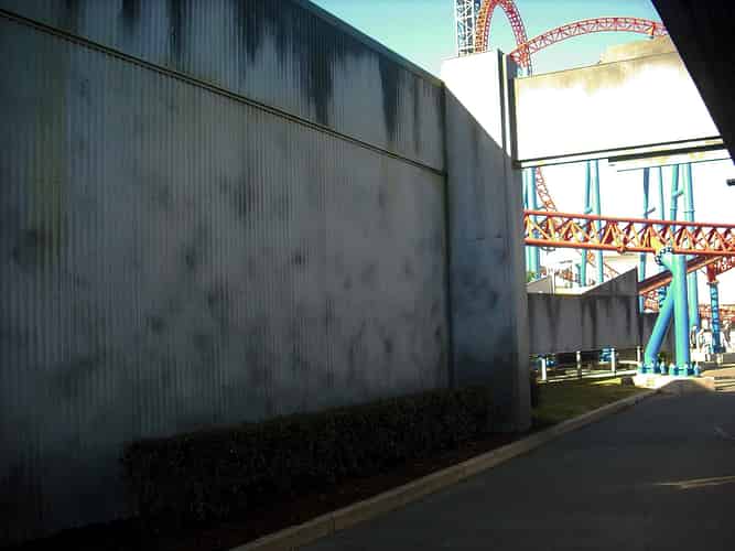 Moving on from the entrance, you can see the fence around the Superman Escape brake run has been given a gloomy grey paintjob.