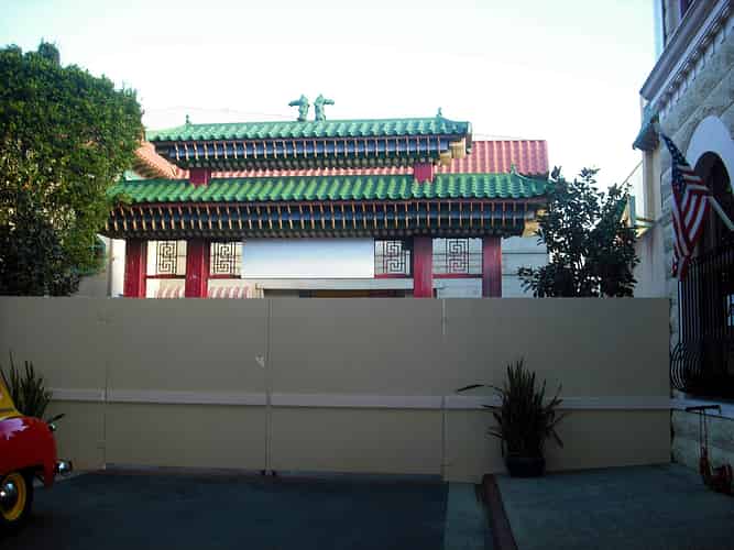 At the other end a rendered fence has gone up in front of the Chinatown gate.