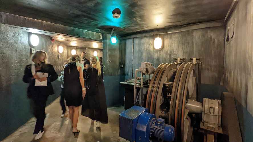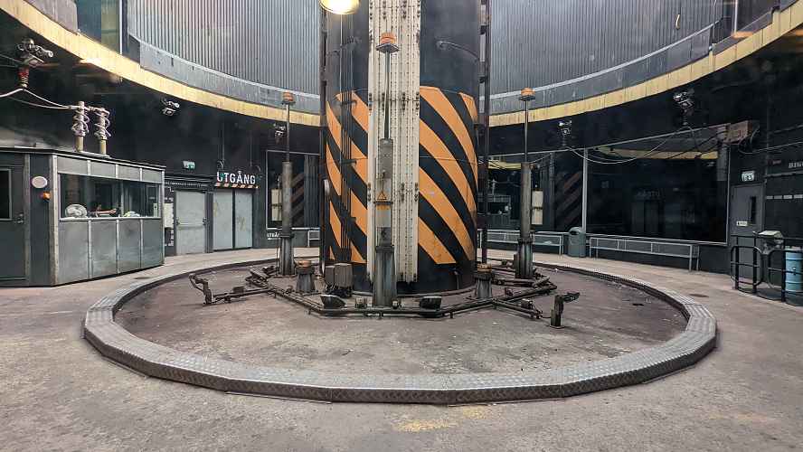 Riders are seated in a ring around the tower. An attendant then passes by with a trolley and offers headsets for those wishing to try VR.