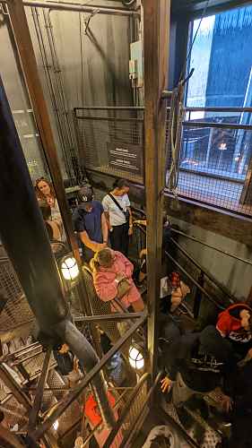 The ride has a magnetic braking system, though large shock absorbers at the bottom bring it to a gentle final stop.