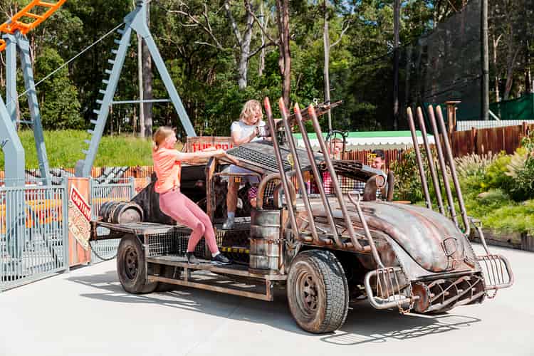The ride features a Mad Max inspired theme. Like many other attractions at Aussie World, it also features a nod to Australian wildlife.