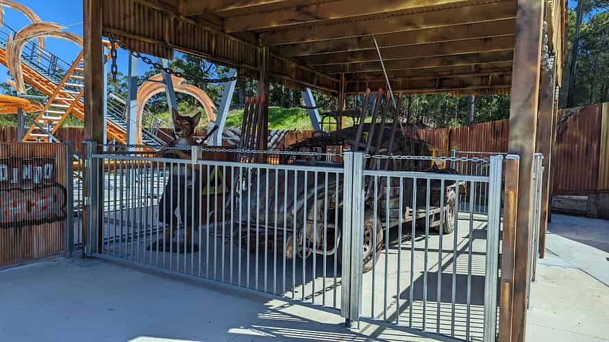 The ride's theme can be summed as Mad Max with dingoes.