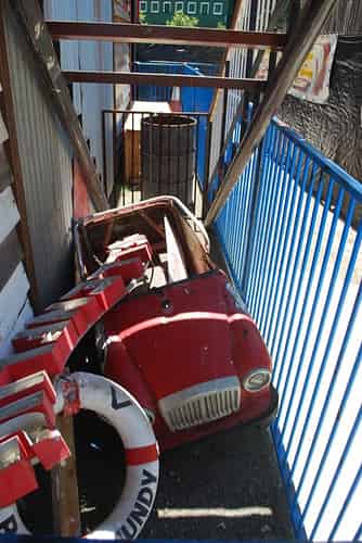 A carriage from the old Wild Mouse Coaster lives on as theming around the 'creepy' Mayhem Maze.
