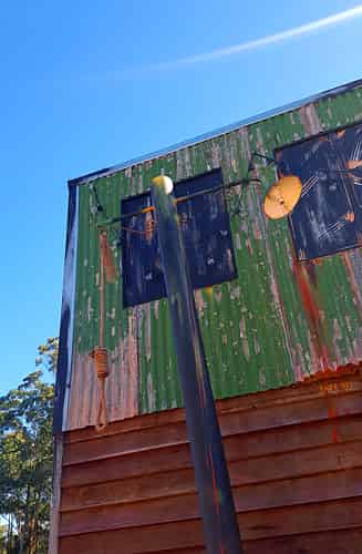 This leaning hayshed used to be the old entrance to the park, and had an old Melbourne tram parked underneath serving as a ticket box. The whereabouts of the tram is unclear.