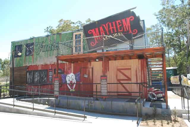 Mayhem Maze is a walk through horror attraction that opened in late 2016, themed around and abandoned carnival on the edge of town inhabited by a crazy clown.
