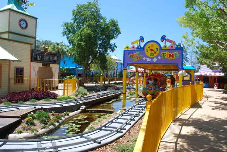 The ride is immediately inside the entrance of the park and features carriages that rock back and forth gently as they travel along.