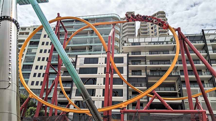 It is the worlds first installation of the Intamin 'Hot Racer' coaster, which has guests sitting in individual cars that straddle a 'single rail' track.