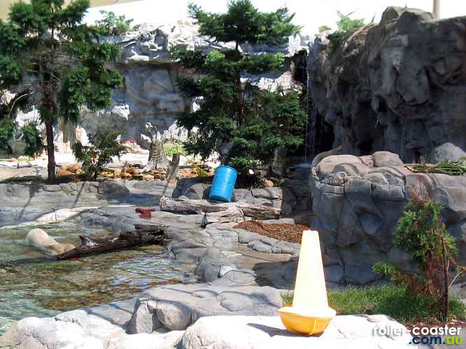 The ride features a drop off the castle in the middle of the park, which now houses the park's 4D theatre.