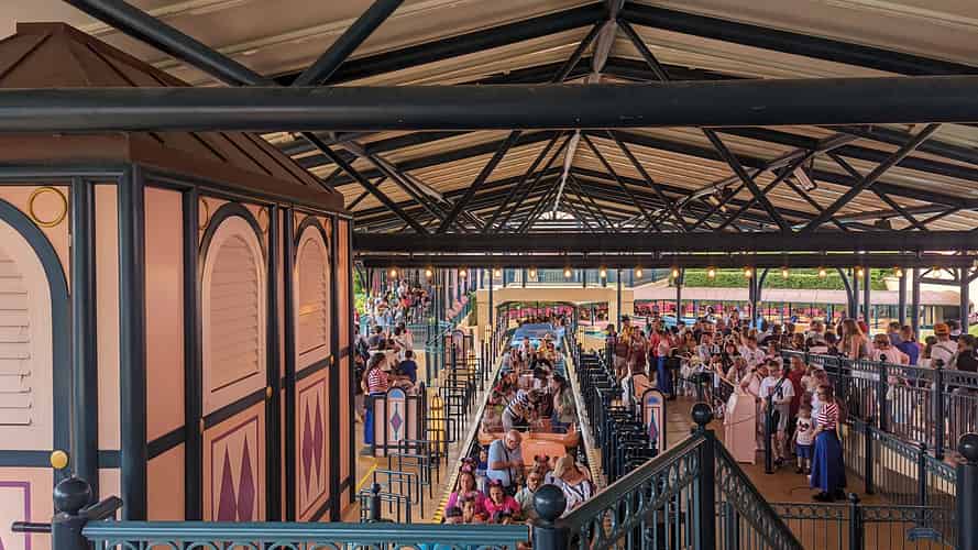 The ride is perhaps one of the highest capacity in the park, with 30 boats holding 20 guests circulating.