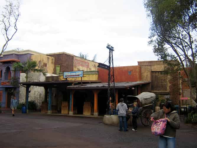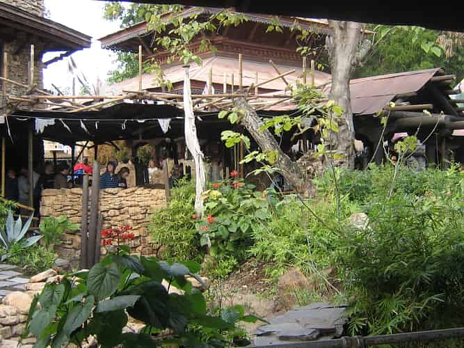The path leading up to the ride is lined with convincing Himilayan village buildings, themed to be catering to the hordes of visitors on mountain expeditions.