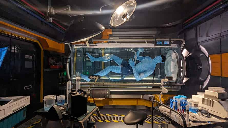 The hero piece, a Na'vi avatar being incubated in a tank.