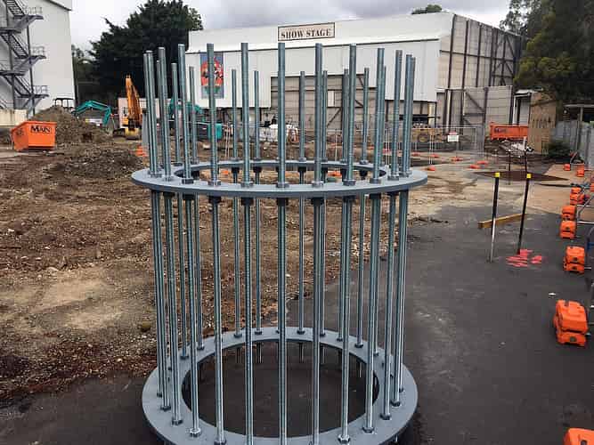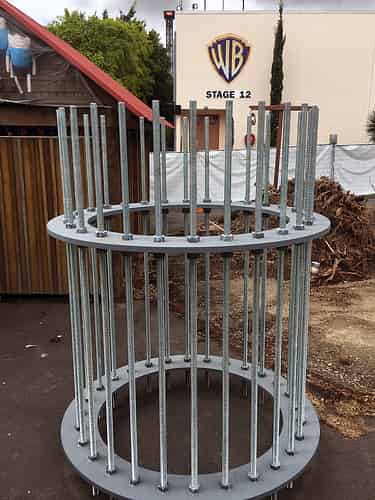 Steel reinforcing that will become the footing for the ride's central support column. If you've ever wondered what's inside those big round concrete footings that ride supports bolt into: this is it.