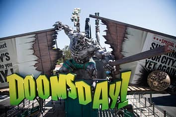 Promo artwork for the DC Comics Super-Villains Unleashed area that will include Doomsday Destroyer.