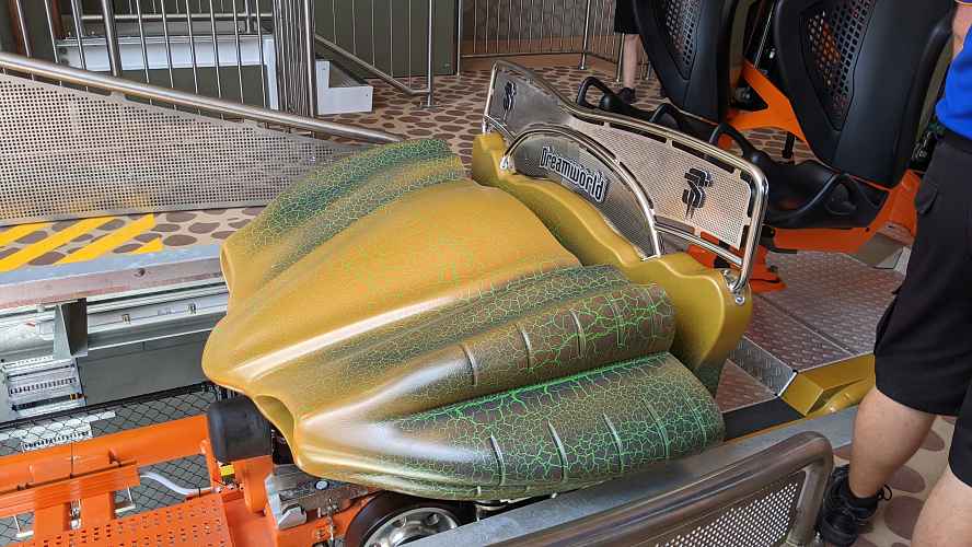 The trains feature a comfortable overhead lapbar and elevated seating, creating a real feeling of openness when riding.