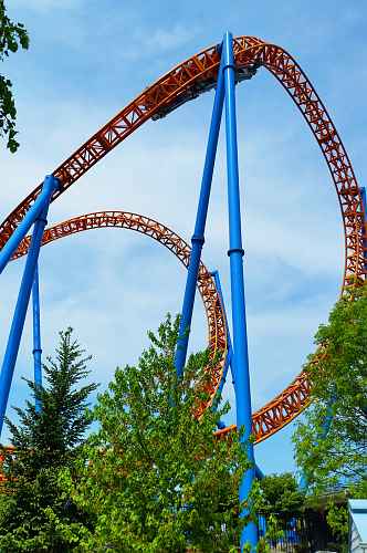 The ride runs short 3 car trains which are a bit more nimble and lightweight compared to the 6-7-8 car trains seen on most looping coasters.