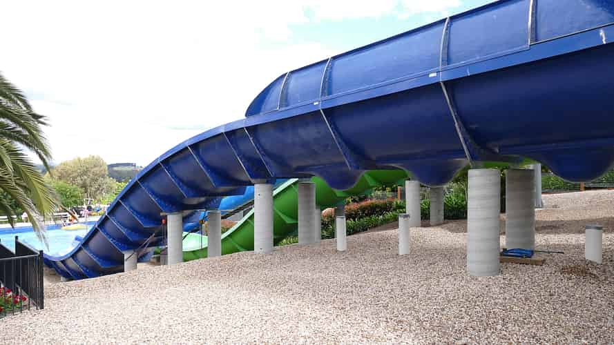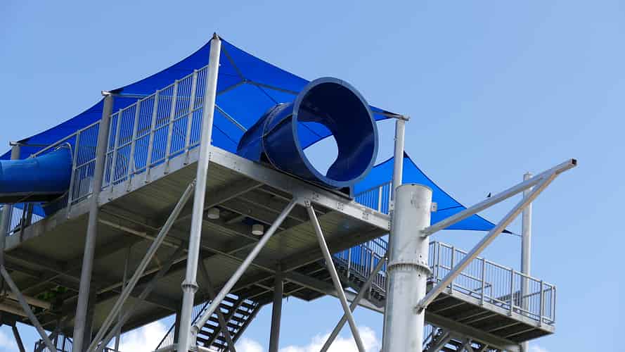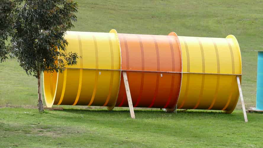 The rockwork, jagged wooden fencing, camo net shade and bamboo emphasize the adventure theme.