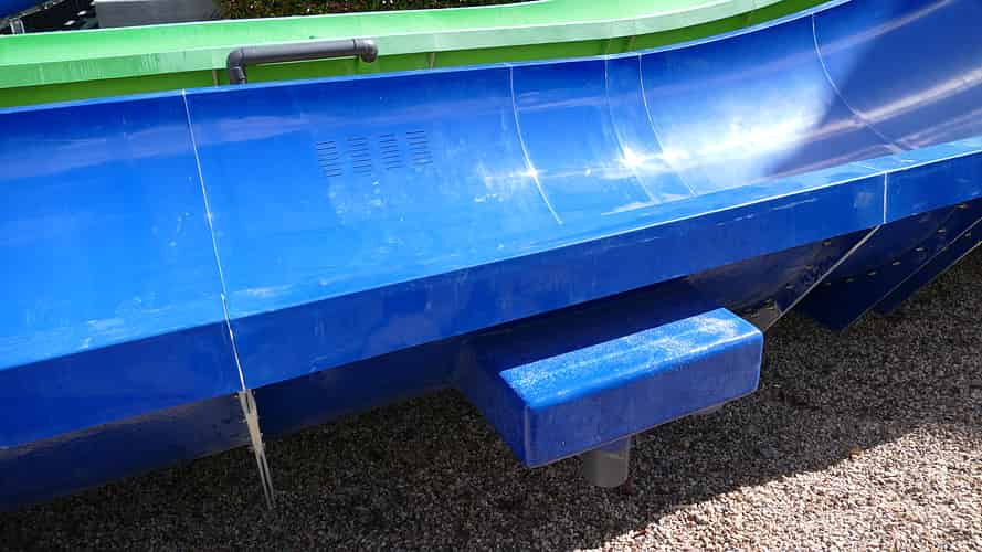 These translucent in-fiberglass patterns allow light to shine through, creating the feeling of accelerated speed.