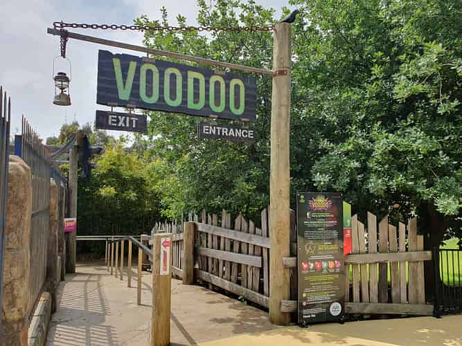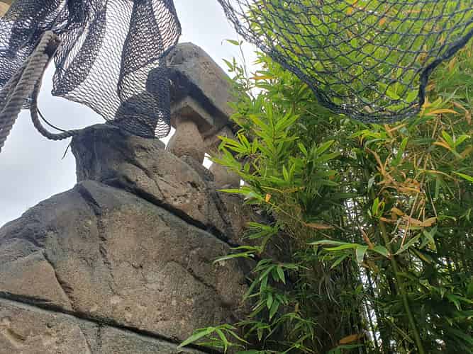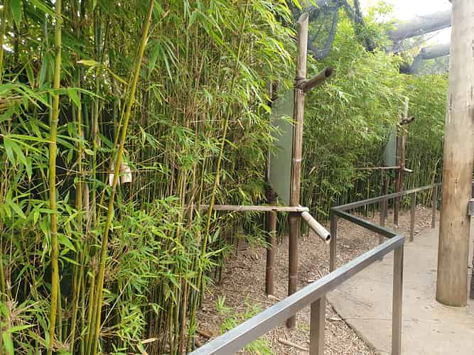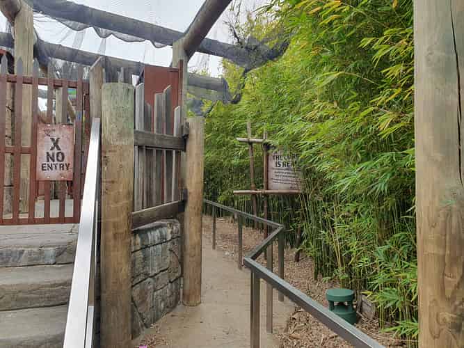 Lush bamboo shades the queue line, creating a jungle atmosphere.
