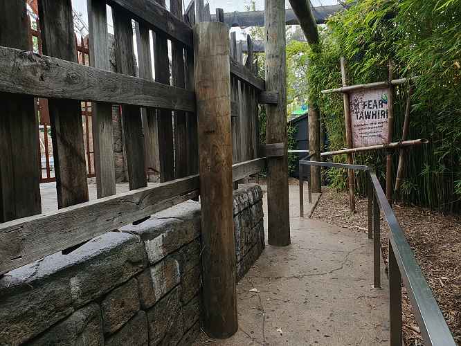 The rockwork, jagged wooden fencing, camo net shade and bamboo emphasize the adventure theme.