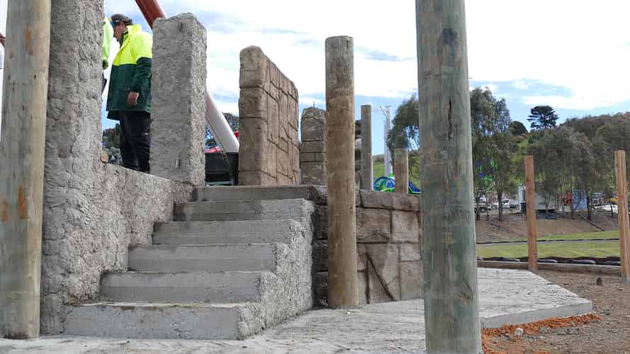An example of how the rockwork is built up with layers of a special concrete/render mix.
