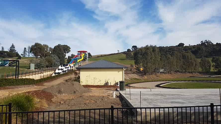 The slab sits quite high closest to the go-karts, due to the hilly terrain of the park.