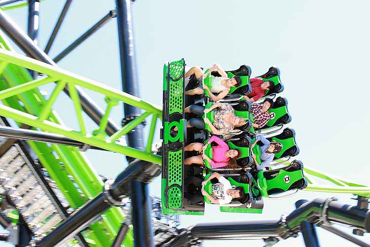 The four-across seating means the outer two seats, particularly in the front row, give a unique sensation as riders are perched with no track below them.